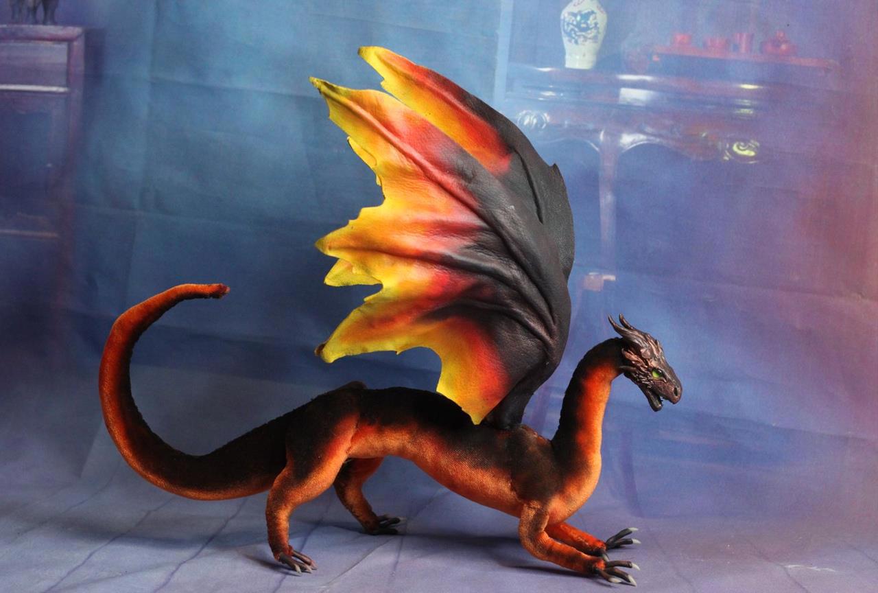 огненный дракон. полностью подвижная авторская игрушка в смешанной технике