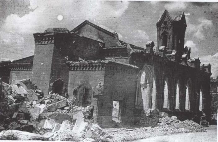 Это выгоревшее изнутри, но не так уж сильно пострадавшее снаружи во время бомбардировки 23 августа 1942 года и последующих боёв здание Сталинградской Художественной Галереи, в которой в огне погибло множество картин, включая творения Айвазовского, Крамского, Репина, Рубенса и многих других великих художников.