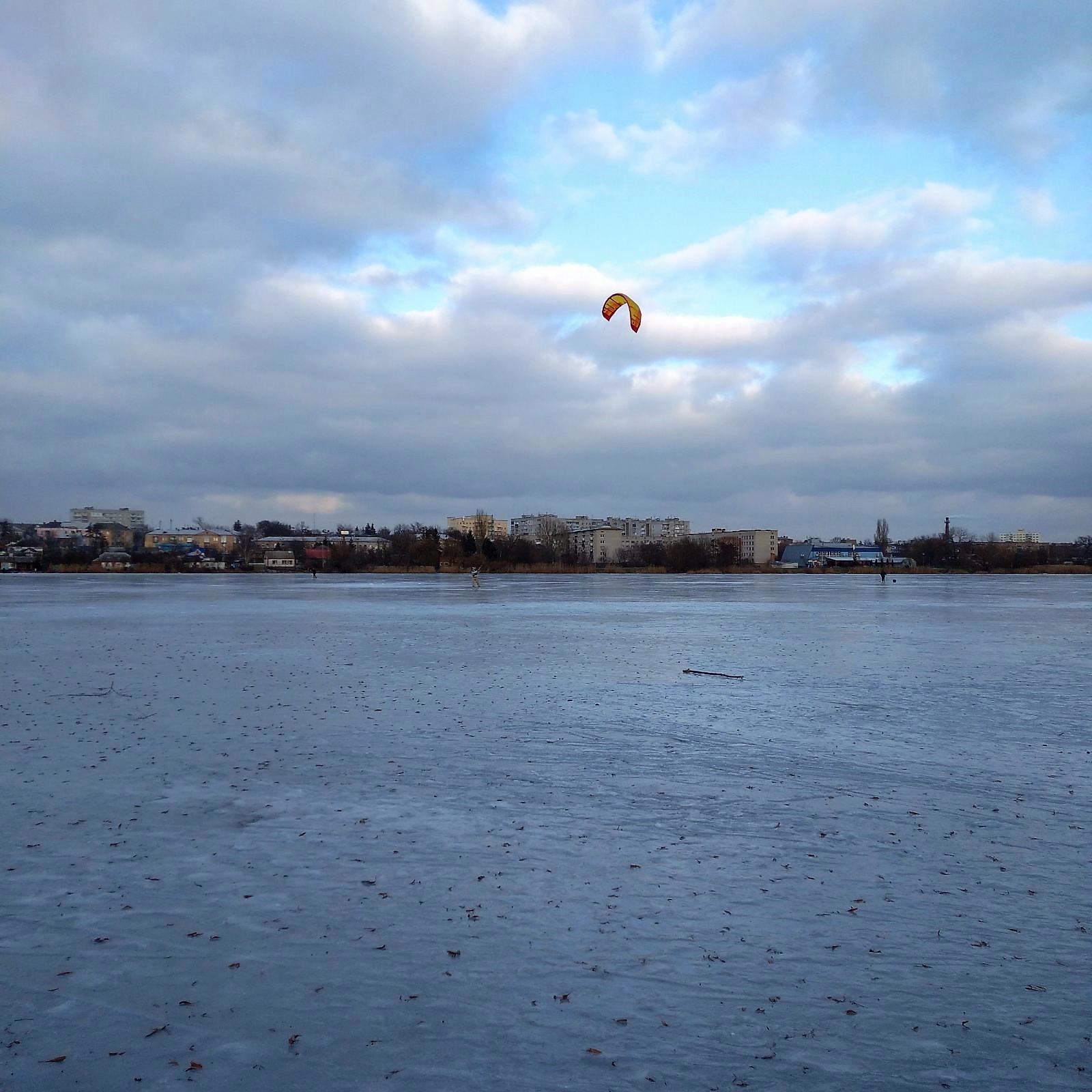 Девочка катается на коньках с вот такой штукой-парашютом. Я не знаю, как это называется. Увеличила, насколько телефон позволял. Вышло не очень, мы были далеко. Ветер дует - оно летит, девочка едет следом. Даже не знаю, насколько это оправдано, так же можно куда угодно заехать, а потом - бац, и я уже пишу про неё хоррорец. С другой стороны, когда я была как эта девочка, то на спор на этот берег плавала. В те времена мне не хватало осмотрительности.