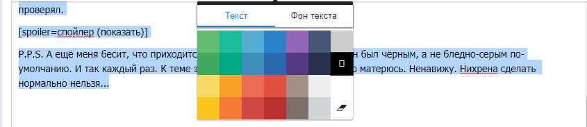 P.P.S. А ещё меня бесит, что приходится выделять текст чёрным, чтобы он был чёрным, а не бледно-серым по-умолчанию. И так каждый раз. К теме это не относится, но я сейчас жутко матерюсь. Ненавижу. Нихрена сделать нормально нельзя...