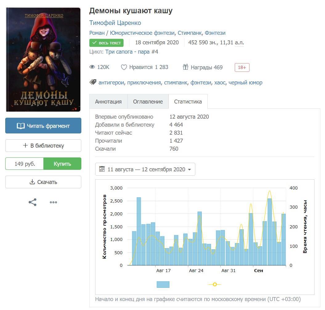 Именно поэтому Тимофею приходится тратить столько сил и средств на поиск читателей. ДАЖЕ топовому автору.