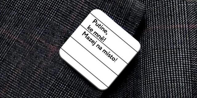 «Путин, ко мне! Место!» (со значком с такой надписью глава МИД дважды приходил на заседание чешского парламента).