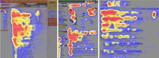 Красным — зоны, где внимание читателя задерживается дольше всего.