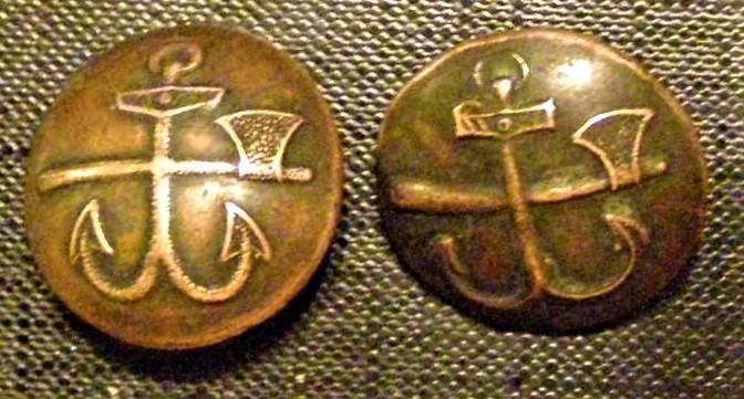 Оказывается в конце XIX - начале XX века российские железнодорожные служащие носили на фуражках кокарды (а также пуговицы на мундирах) в виде скрещенных топора и якоря (по терминологии того времени - "топор и кошка"). Вот такие: