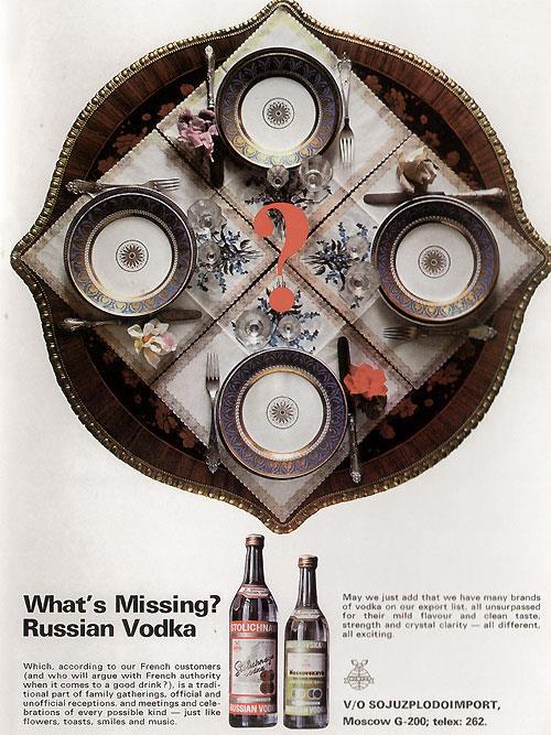«Русская водка — тонкий аромат хлебного спирта и необыкновенно мягкий вкус»