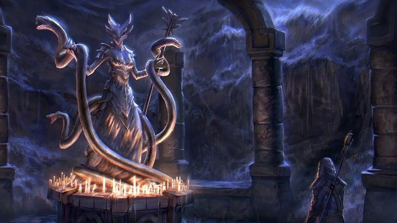 Мефала. Прядильщица Сетей, Пряха, Паучиха, Бог-Паук, Мать Ночи — Принц Даэдра, двуполое божество. Её сфера — секреты, убийства, но главное — искусство, искусство убийства в том числе.