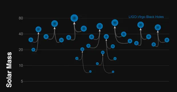 На данный момент детекторы гравитационных волн LIGO и Virgo объединились, чтобы обнаружить 20 черных дыр звездных масс, которые сливаются, образуя черные дыры с массой от 20 до 80 солнечных. Хотя LIGO-Virgo не обнаружил никаких ЧД (более 100 солнечных масс), исследователи с оптимизмом смотрят на их обнаружение в будущем.