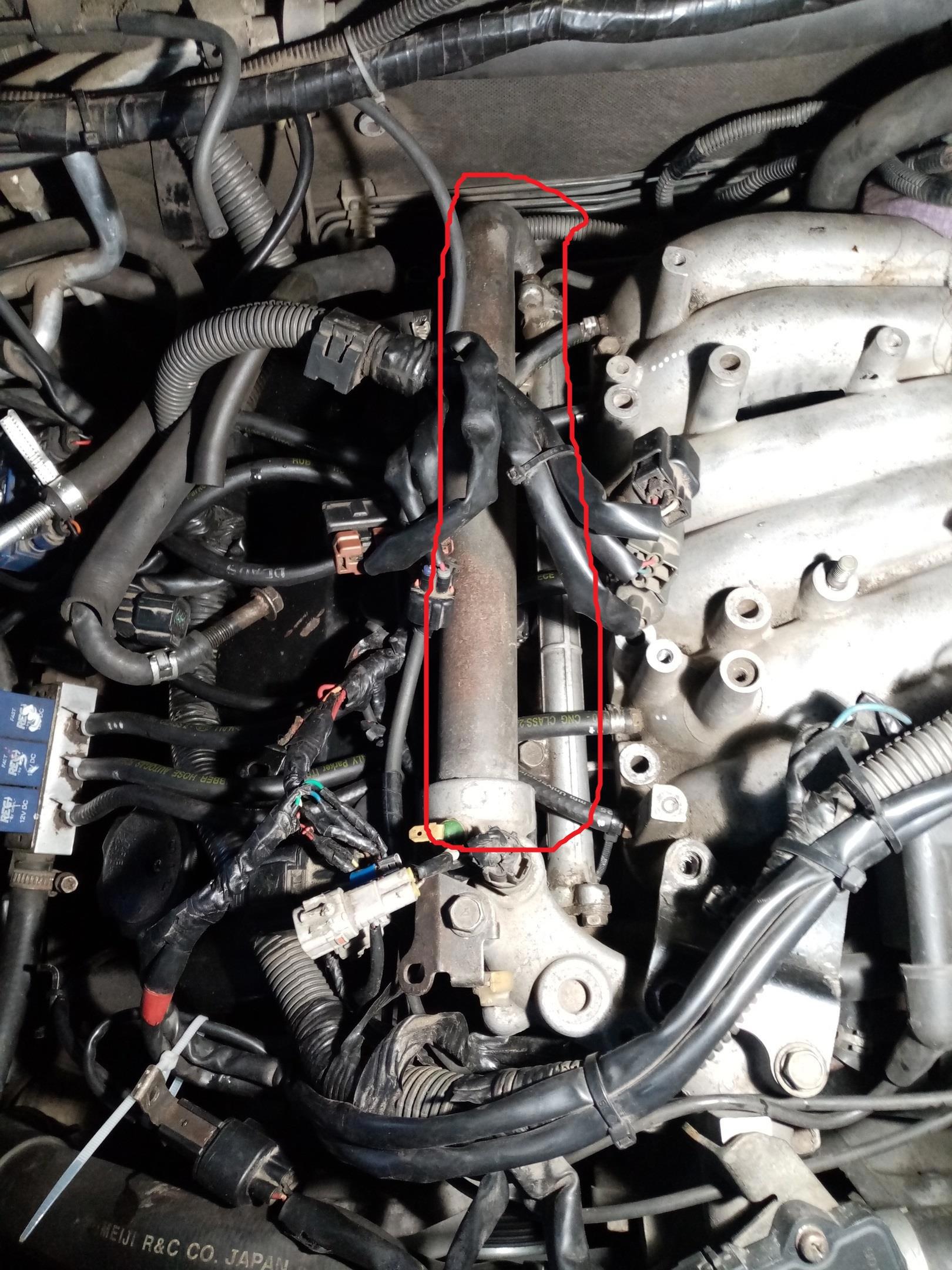 В среду у меня был опять Mitsubishi Montero. Ибо в прошлый раз не устранили течь антифриза. Начали его исследовать. В развале цилиндров двигателя Монтеро проходит трубка охлаждения, которая входит в головки цилиндров позади двигателя, сама трубка Г-образная, а входит она в вот такую трубку - [ в форме скобки. И собрано всё это на резиновых колечках. Заводим его, греем, смотрю в зеркало с фонариком за мотором, и вижу что по стыку скобки и г-трубки течет. Опять снимаю впуск (на опыте снял за 20 минут), доставю эту трубку, которая зафиксирована болтом позади правой головки, откручиваю отвод от помпы, в который г-образная трубка вставлена спереди, и извлекаю всё это безобразие на свет Божий.