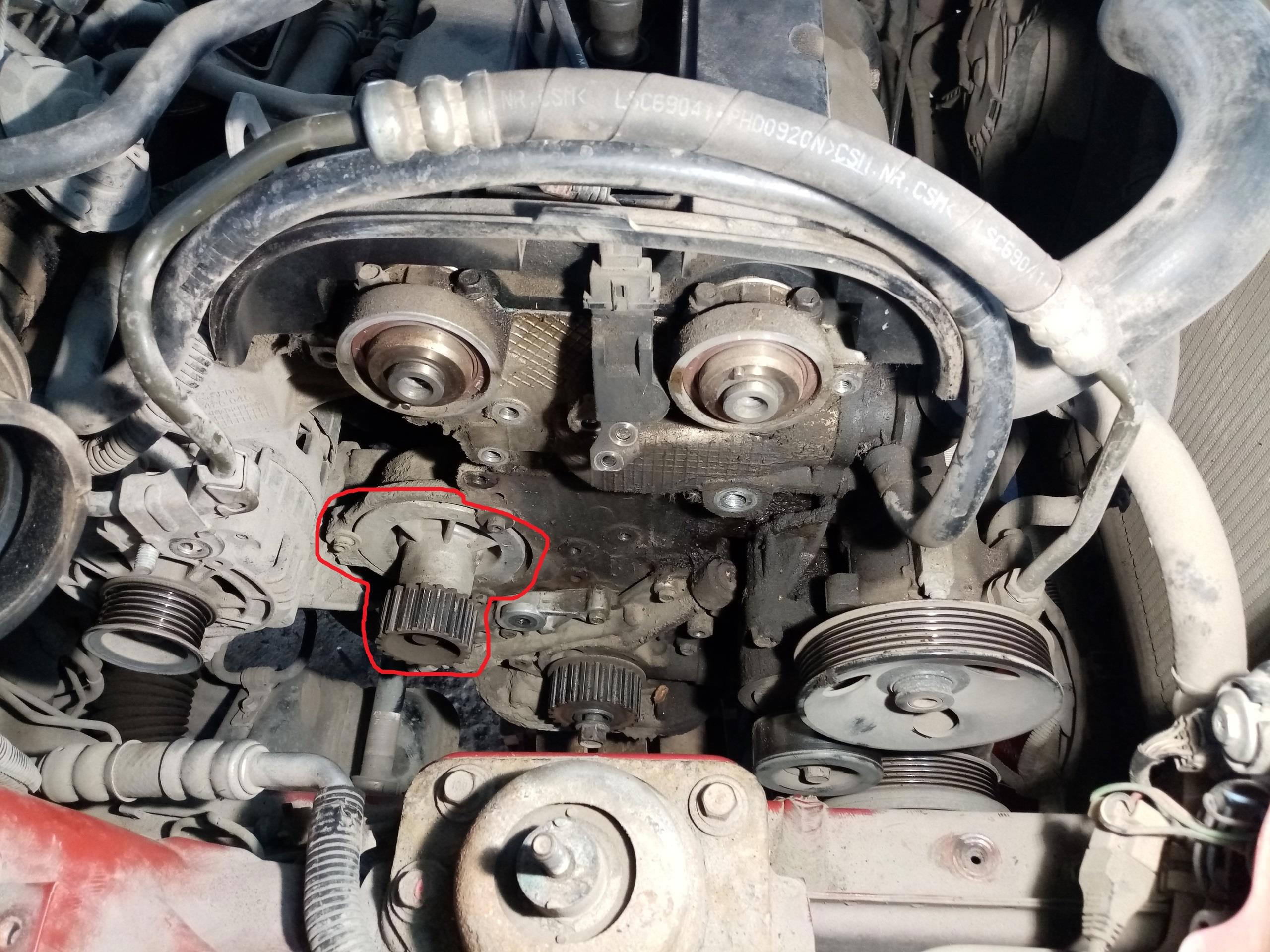 Когда собирал всё в зад, обнаружил что правый обводной ролик тёр крышку под ним. Представляю какой адский звук был при работе двигателя... Новый тоже её начал шоркать, и мне это как-то не понравилось. Ослабил этот кожух, который сидит на четырёх болтах, придавил в районе ролика рукой, и протянул от ближайшего болта до дальнего. Прикрутил ролик, покрутил сам ролик - не задевает. Найс! Собираем дальше.