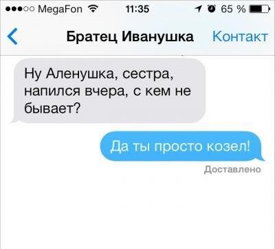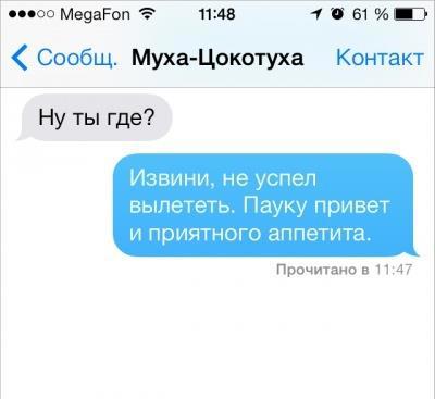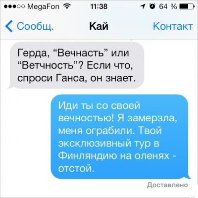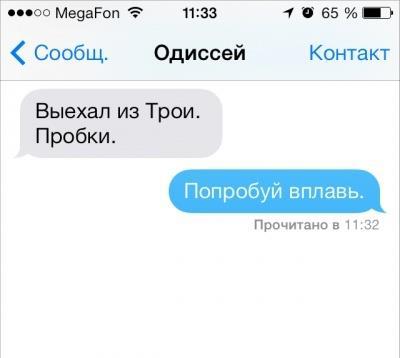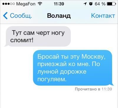 Автор: Ангел 888Будь у них смартфоны, сюжеты сложились бы по-другому. В наши дни SMS-ки дают неограниченный простор для творчества. Иногда креативная искра проскакивает и в обычной переписке, но иногда люди сознательно задаются вопросом: «А что, если...?», и в этом случае появляются выдуманные диалоги самых разных персонажей.