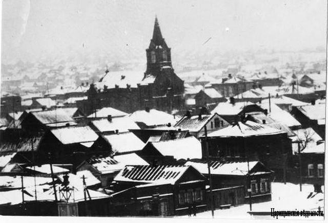 Автор: ЛиСиЦаТак выглядели царицынские Балканы в начале двадцатого века - над небогатыми домами возвышается построенный в 1899 году костёл (его история, я думаю, будет отдельно):