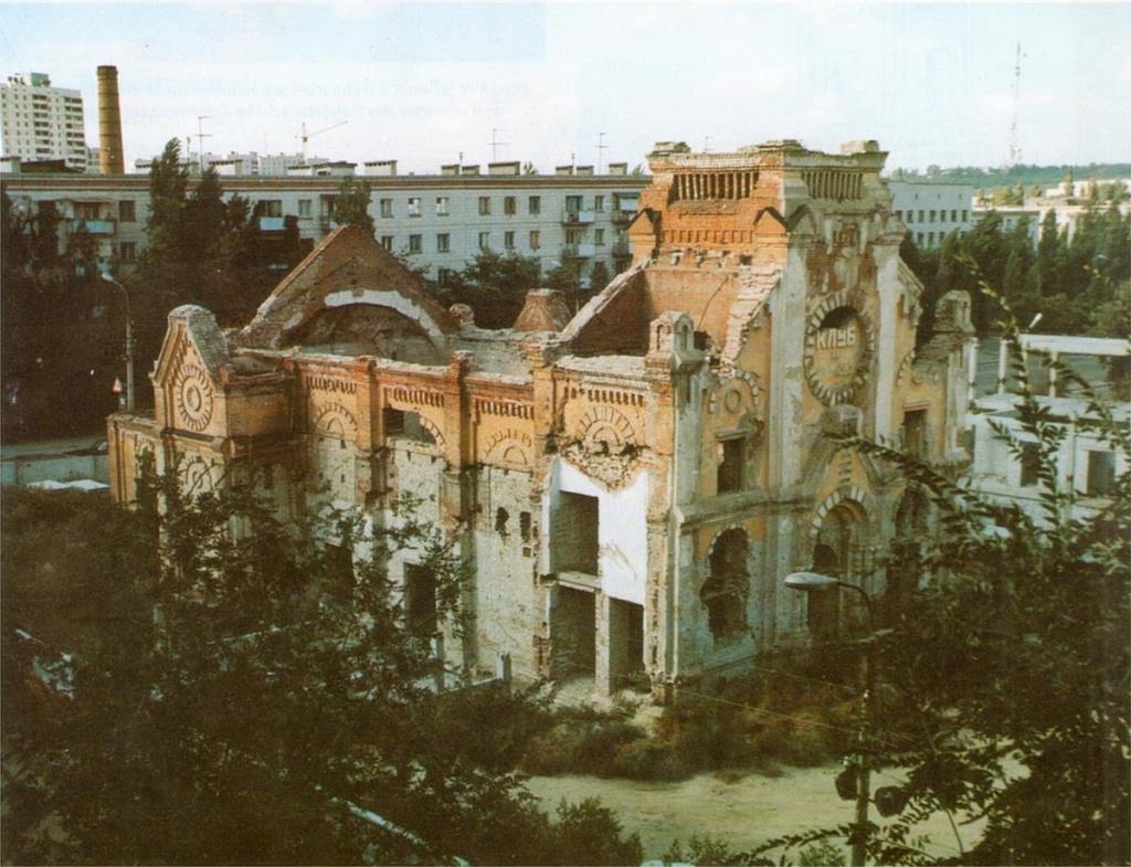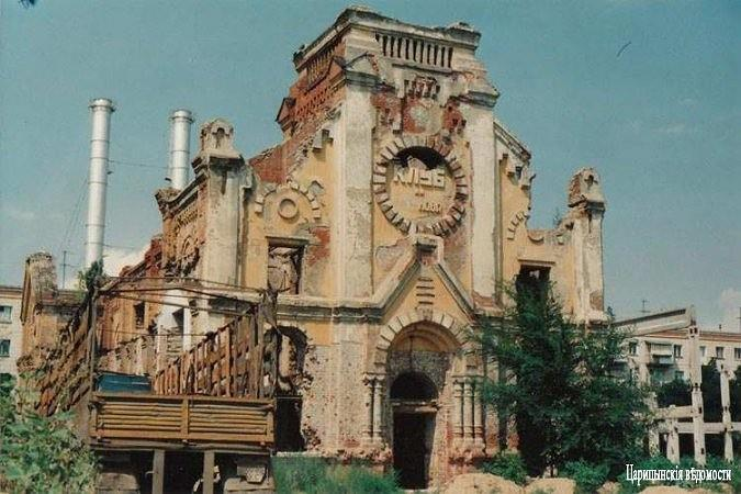 Во время Сталинградской Битвы здание было повреждено, но ему опять повезло: оно всё же было восстановлено, хотя при этом и был полностью разобран шпиль, а большое круглое окно заложено кирпичом, где и появилась надпись: "ЖД клуб им. Жданова". Фото 1949 года: