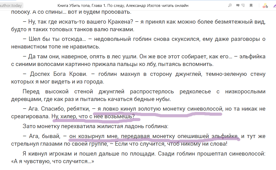 В общем, мне хватило этой сцены с эльфийкой и гоблином, чтобы понять, что ГГ - самовлюбленный мудак, не успешный в реале и сумевший добиться успеха в игре, за счет чего несколько улучшивший свое положение в реале. МНЕ такой ГГ не интересен.