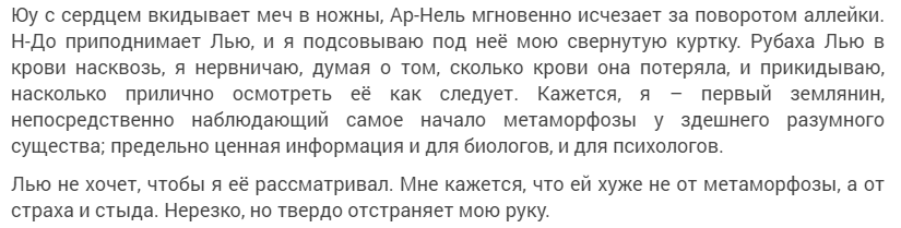 В этой главе продолжается первая жесть и первые битвы, плюс к этому добавляется присутствие Ника — Николая Дурова — земного ксено-этнолога, и его взгляд на происходящие события.