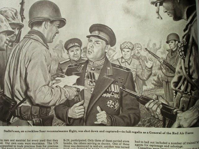 Разгром России настолько представлен во всех мельчайших подробностях и нюансах, что вот вам, пожалуйста, момент захвата в плен генерала Василия Сталина. Написано, что сбит во время разведывательного полёта, при всех регалиях и в парадной форме.