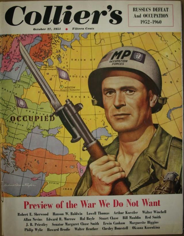 Автор: Архивариус27 октября 1951 года, в самый разгар войны на Корейском полуострове, в которой бились друг с другом военные США и СССР, вышел специальный выпуск американского журнала «Collier's» под названием «Образ войны, которой мы не хотели» («Preview of the War We Do Not Want») с подзаголовком «Поражение и оккупация России, 1952—1960».