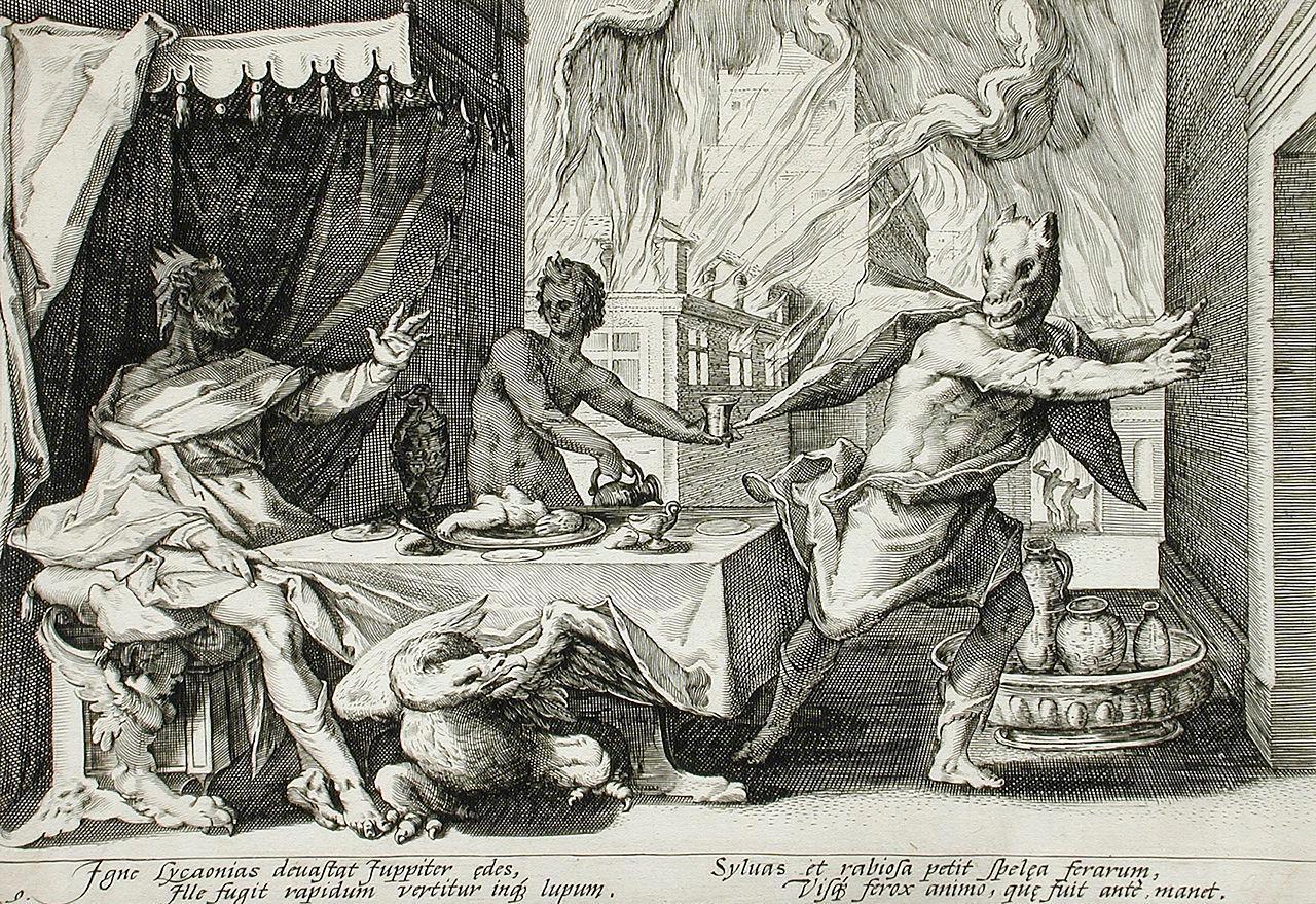 Позже злодеяние Тантала повторил уже именно аркадский царь Ликаон, подав на стол царю богов Зевсу кушанье из тела своего сына. История повторилась в точности, только Ликаона, по легенде, в наказание превратили в волка.
