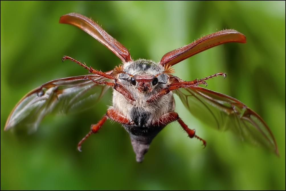 По всеобщему мнению инженеров майский жук – лётчик совершенно бездарный, абсолютно не созданный для того, чтобы летать. Он и толстый слишком, и крылья у него маленькие, да и мускулатура не впечатляет... При такой комплекции надо быть раза в три сильнее, чтобы оторваться от земли.Тем не менее майский жук летает, и летает довольно быстро – со скоростью до 3 метров в секунду.