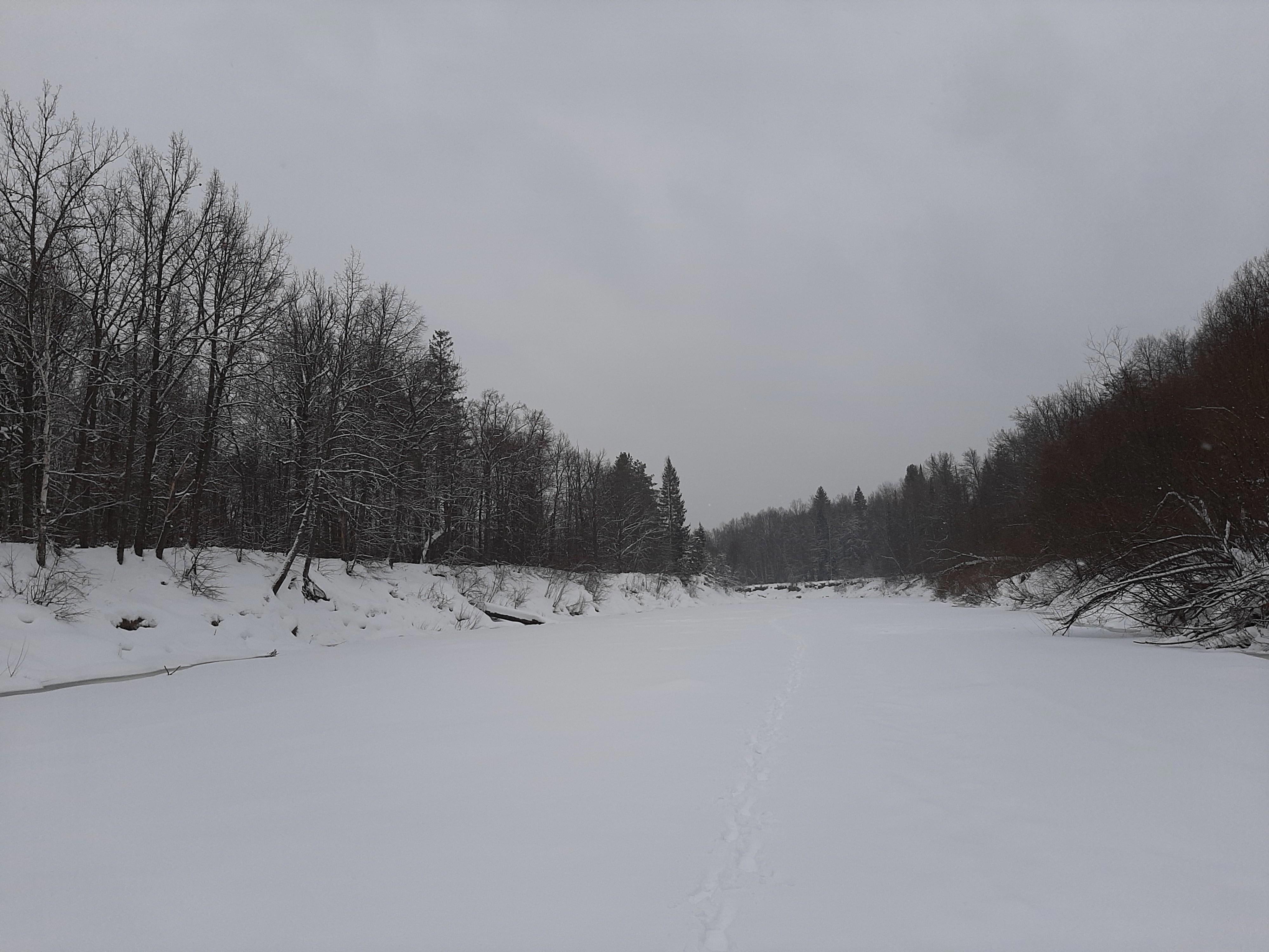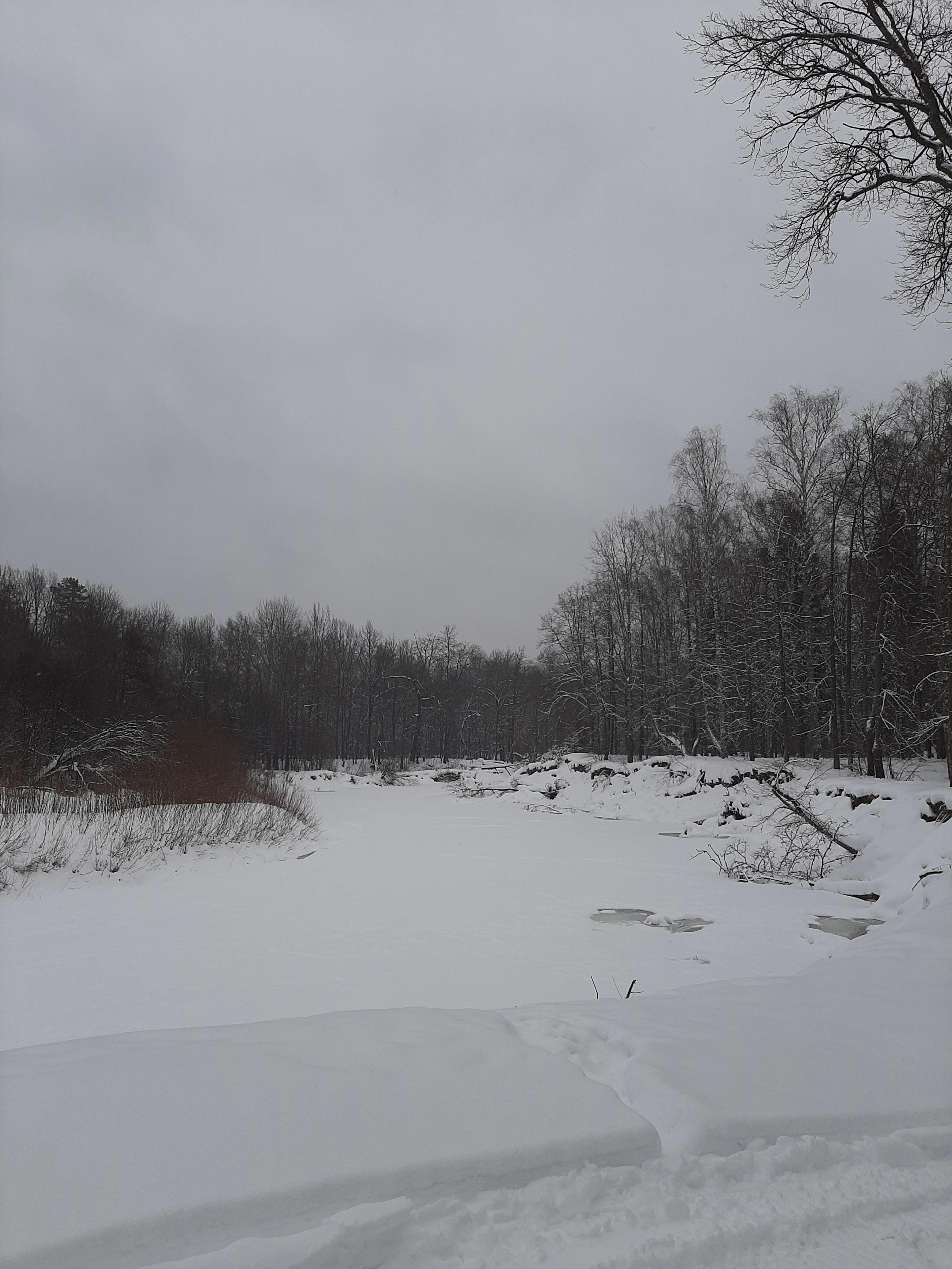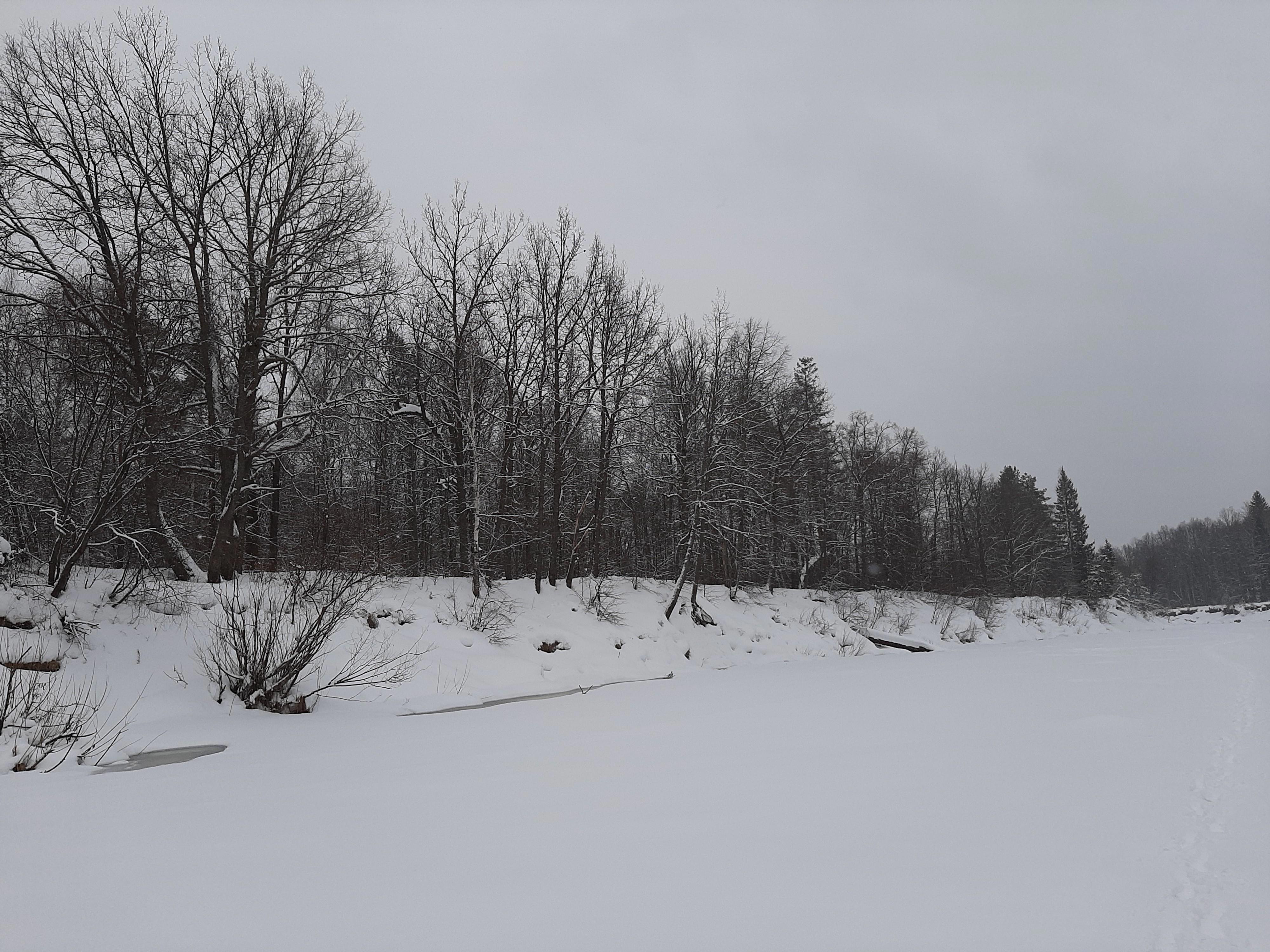 Река Кокшага в феврале: вид с берега (пробраться можно только на снегоходе)