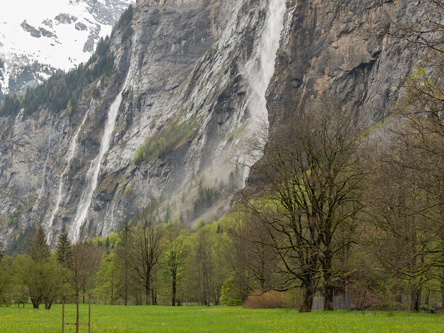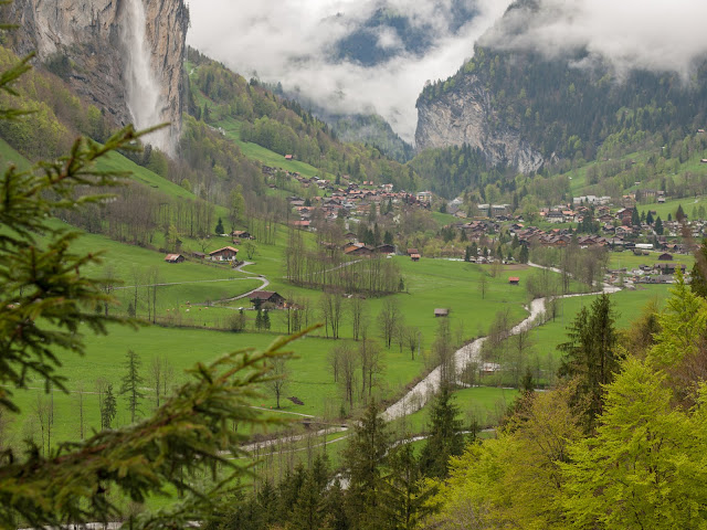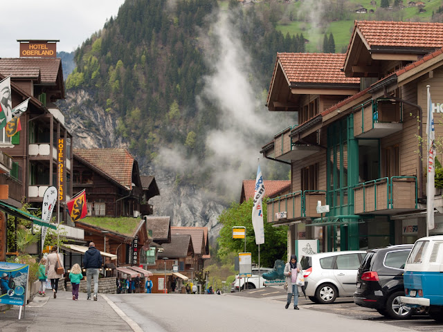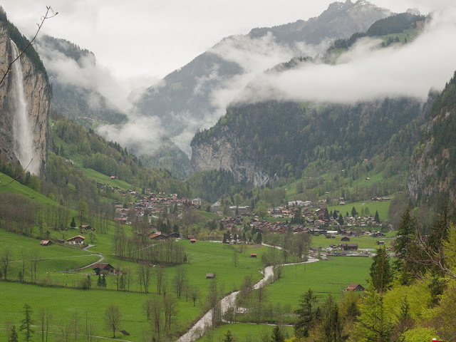 Автор: Яна ВетроваЛаутербруннен — это долина водопадов. Представьте себе: справа гора, слева гора, а между ними — зеленая долина. И все это тянется до горизонта! Мы были там в мае, когда снег в горах тает и водопады становятся очень шумными.