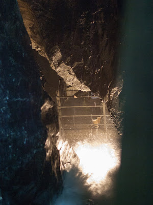 Сначала мы пошли смотреть самый большой водопад. Снаружи его не видно, он внутри горы! Мы шли по лестницам, но есть и лифт, чтобы подняться сразу на самый верх (а это его старый макет).