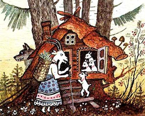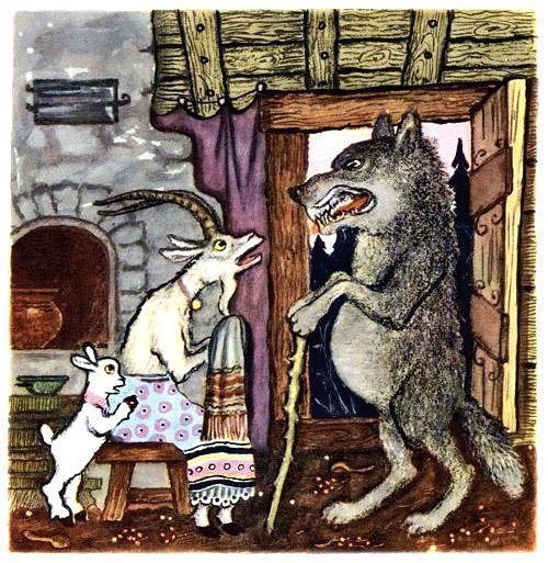 Но опьянение успехом - опасная штука. Волк не потрудился обыскать всю избушку и проглядел единственного козлёнка, который спрятался в печке.