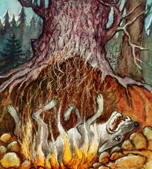 Дальше - зная, что преступление не является тайным, что козе всё известно, он является к ней и на голубом глазу заявляет: "Да не жрал я твоих сопляков? Сто лет они мне не снились, я веган. Кто видел? Вот этот недоделок? Да он их сам и сожрал. Не-е, не сожрал, а росомахе продал за кулёк конфет. Пошли лучше погуляем, продохнёшься, горе развеешь..."
