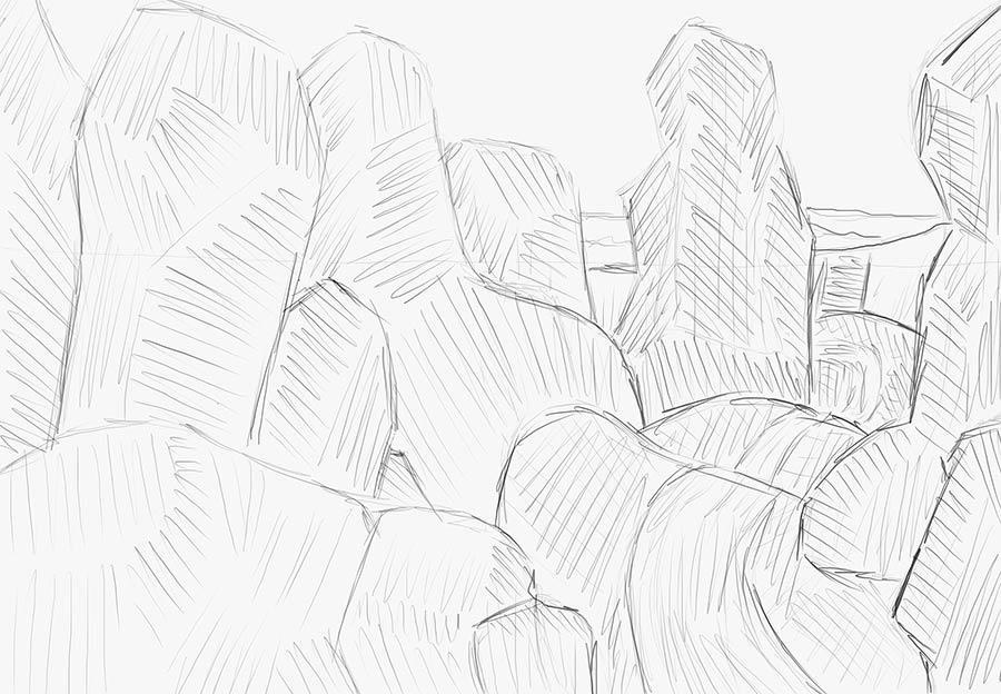 Несколько дней я привыкал к планшету, учился им пользоваться и потом начал уже пробовать делать первые наброски. Получалось так себе и в какой-то момент я даже успел отчаяться и задуматься над тем, чтобы заказать обложку у дизайнера, даже если получу не совсем то, что хочется из-за ограниченного бюджета. Мне просто казалось, что это в любом случае будет лучше того, что смогу выдать сам. Решил, что займусь этим на следующий день.