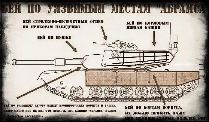 Реальный прецедент. Опыт противодействия тяжёлым "абрамовичам" на Ближнем Востоке, которые хорошо себя зарекомендовали как орудие борьбы с полудикими племенами, но плохо - как современная боевая техника. Разносчики демократии с переменным успехом (читай - иногда сказочно лажая) научились не сразу отправляться в свою гамбургерно-кокакольную Вальхаллу, при встрече с парой бедуинов, но при столкновении даже с преподавателем ОБЖ с РПГ-7В тушуются и перестают улыбаться. Совсем. Возможно потому, что "Абрамсы" с тыла и флангов всё ещё уязвимы для оружия, сделанного в СССР...