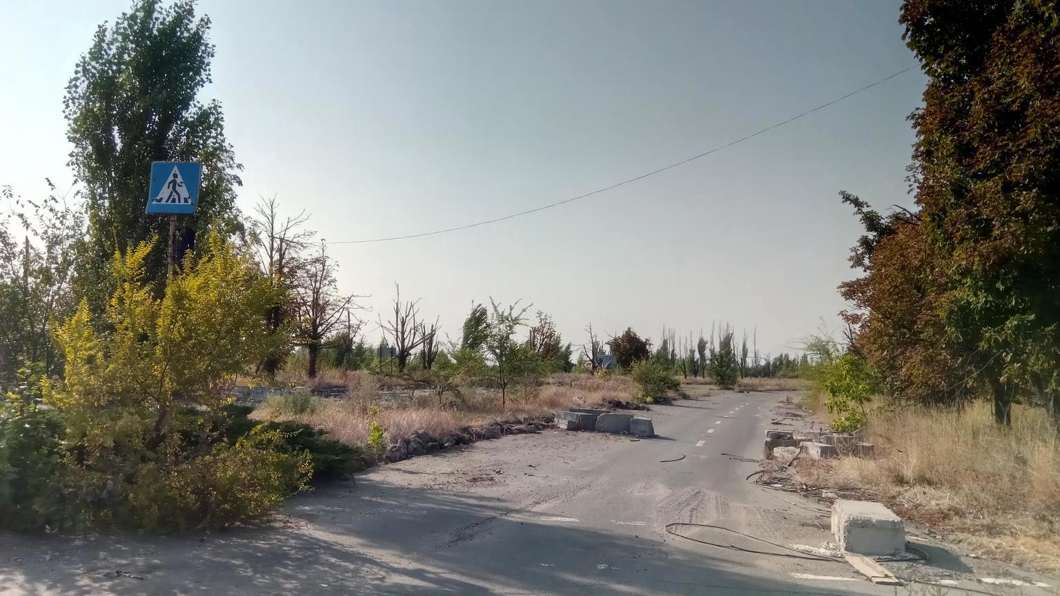 Здесь тишина. Её нарушают только наши негромкие голоса да скрип ржавых осколков и автоматных гильз под ногами. Они валяются повсюду, через них невозможно переступить. А вот – хвостовик от мины. Искорёженный огрызок от боеприпаса системы «Град». Куски бетона. Проволока. Сбитый и простреленный дорожный знак.