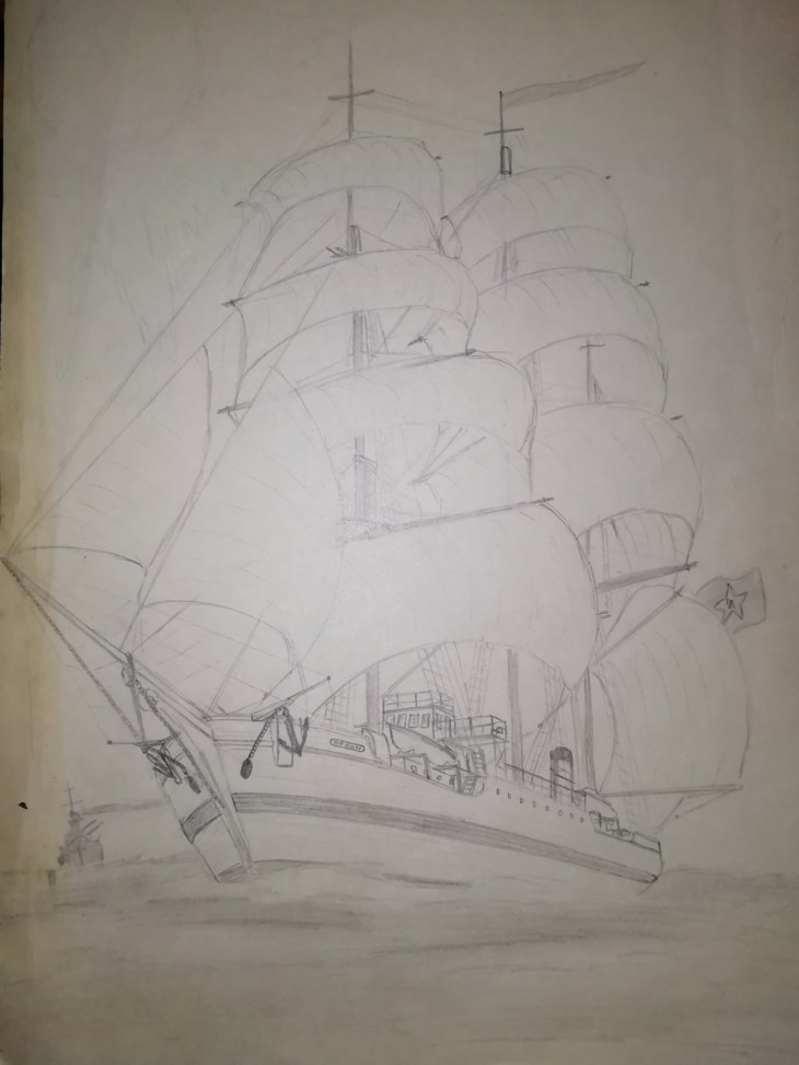 Знакомьтесь - барк "Орион", центральное действующее лицо аж целой серии моих романов, так и оставшихся в тетрадках на 96 листов. Аж четыре про приключения бравой команды каперского корабля во второй половине ХХ века, плюс ещё три "бандитских" спин-оффа (о которых я уже писал). А началось всё именно с него.