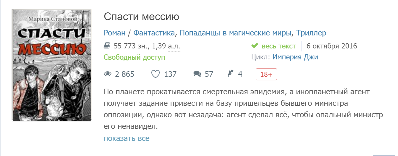 Вопрос: Как кусаем? Просто. Ищем самое первое опубликованное произведение, у Марики это: "Спасти мессию".