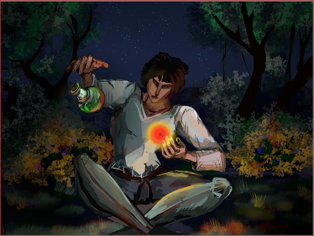 Автор: Артём ИвановДавно меня мучал вопрос с обложкой. Не мог найти ничего интересного, а старая, на мой взгляд, скорее отталкивала читателя, чем привлекала. Три дня назад наткнулся на зарисовку в ленте от одногруппницы по универу ( виделись в последний раз лет 6 назад). Набросок понравился и я подумал, а почему бы не спросить? В итоге, Анаит за два дня сделала потрясающую обложку ( на мой взгляд). У меня было свое видение, но вместе мы решили, что будет чересчур перегружено элементами и того не стоит. После чего я дал карт бланш. В итоге, замечательная идея объединить "Огонёк" и склянку с зельем бодрости)