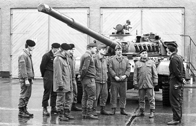 Офицер-танкист Национальной народной армии ГДР проводит лекцию о устройстве танка Т-72 для офицеров Бундесвера; ~ 1990-1991-й гг.