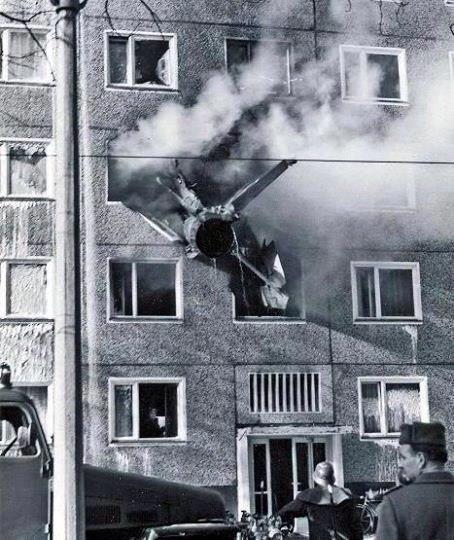 МиГ-21 ВВС ГДР, врезавшийся в дом. Коттбус. ГДР. 21 января 1975 года