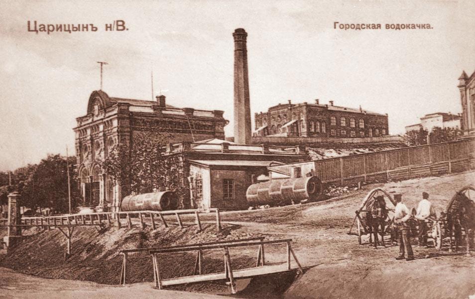 В XIX веке Царицын рос, как на дрожжах, и уже в 1860-х годах стали возникать идеи о строительстве в городе водопровода. Но многочисленные проекты не были реализованы, и только в 1884 году городские купцы создали специальный фонд, который пополнялся деньгами на организацию водоснабжения. Как только деньги были найдены, к строительству водопровода приступила подрядная фирма «Б. Р. Бромлей и К». Стоимость работ составила чуть более 200 тысяч рублей. Автором проекта стал инженер Зимин, принимавший активное участие в разработке проектов и смет водопроводов Вологды, Самары и Саратова.