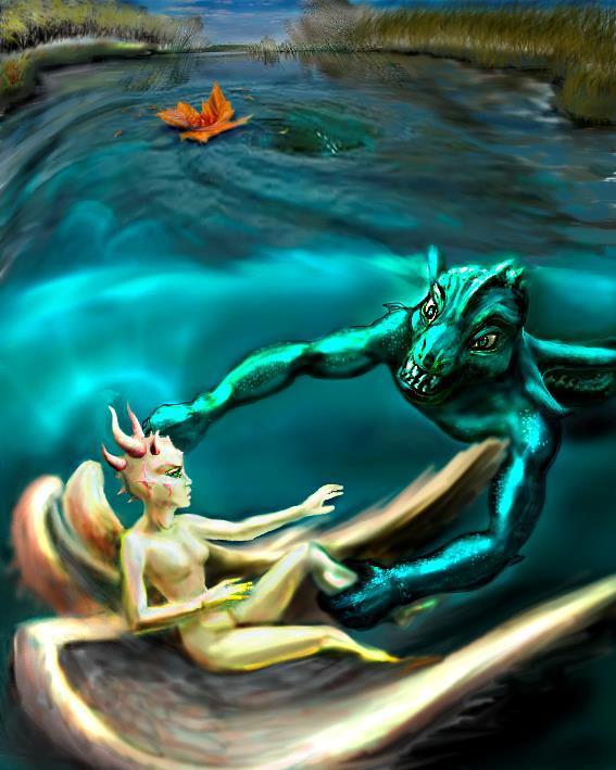 Автор: Leonardo de Pushkariny"Схватка в омуте" - иллюстрация к главе 2 книги "Как я стала Красной Шапкой II - Восхождение Богини"