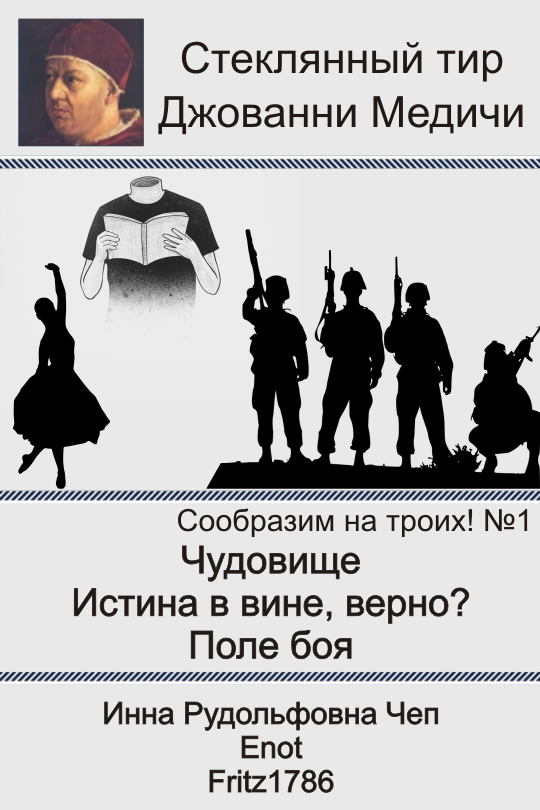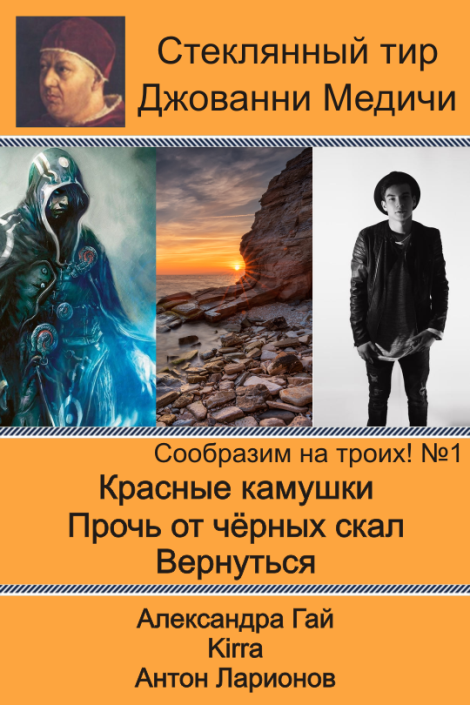 Автор: Стеклянный тир Джованни МедичиЧитайте, ставьте оценки. Учитывайте, в том числе, насколько органично авторам удалось использовать обязательные фразы. В каждом рассказе должно быть три из них, в сборнике – все.