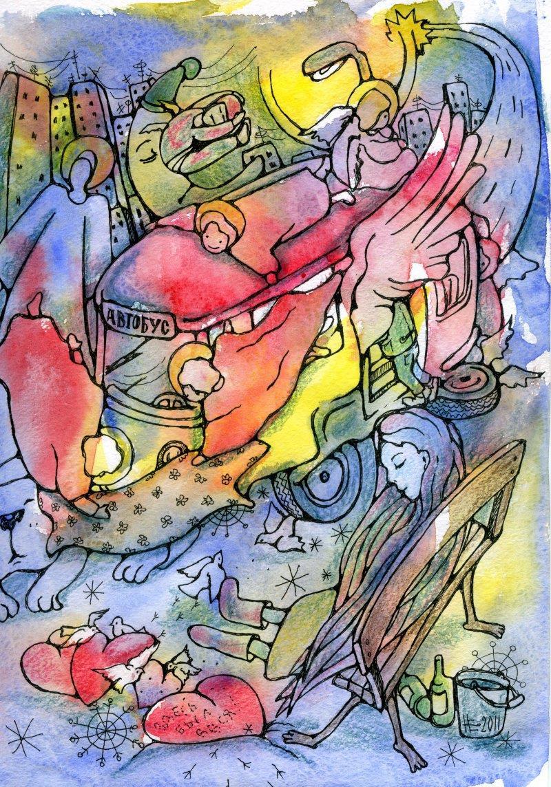 Автор: БеспяткинГде-то, как-то, на просторах интернета свела судьба меня с замечательной женщиной-художником. Елена Невмывако имеет свой неповторимый авторский стиль. Я даже не знаю как называются такие техники рисования, но уж дюже волшебно всё то. Совсем неожиданно она нарисовала несколько иллюстраций к моим рассказам. Я был в диком восторге. Ибо она уидела в моих текстах то, что я сам-то разглядеть не сумел. С тех пор мы тесно общаемся, хоть и на большом расстоянии. Где Липецк, а где Одесса...