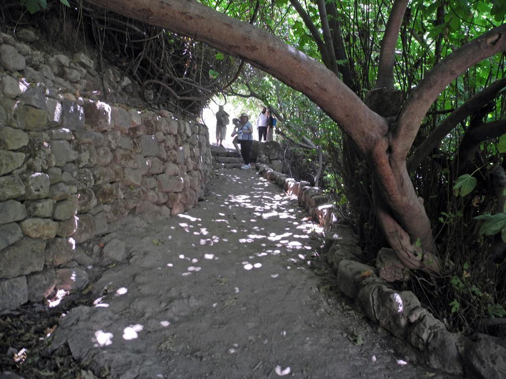 Дорога к водопаду живописная, тенистая по большей части, что очень приятно при температуре 35, и, поскольку круто вниз, ступеньками по большей части. К ступенькам жителю Хайфы не привыкать, но они явно не рассчитаны на рост полтора метра, и это хуже(((