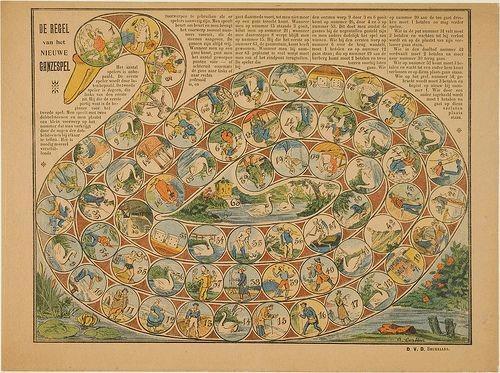 Согласно Музею Детства Виктории и Альберта, это времяпрепровождение быстро распространилось по всей Европе, притом во всех слоях общества. Уже в июне 1597 года некто Джон Вулф описал ее как “самую новую и самую приятную игру в гуся”, а в последующие столетия появились различные версии, каждая со своими собственными иллюстрациями и тематикой.