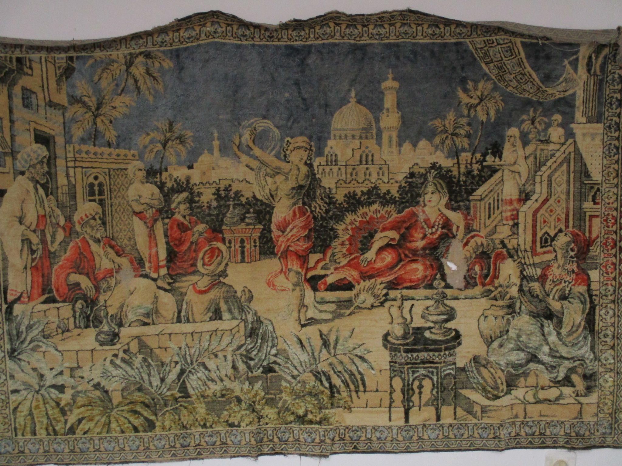 Вот этот гобелен (кустарный, примитивный, базарный) достался мне от мамы. Мама родилась в 1901 году. А ей он достался от бабушки. Бабушка родилась в 1874 году.