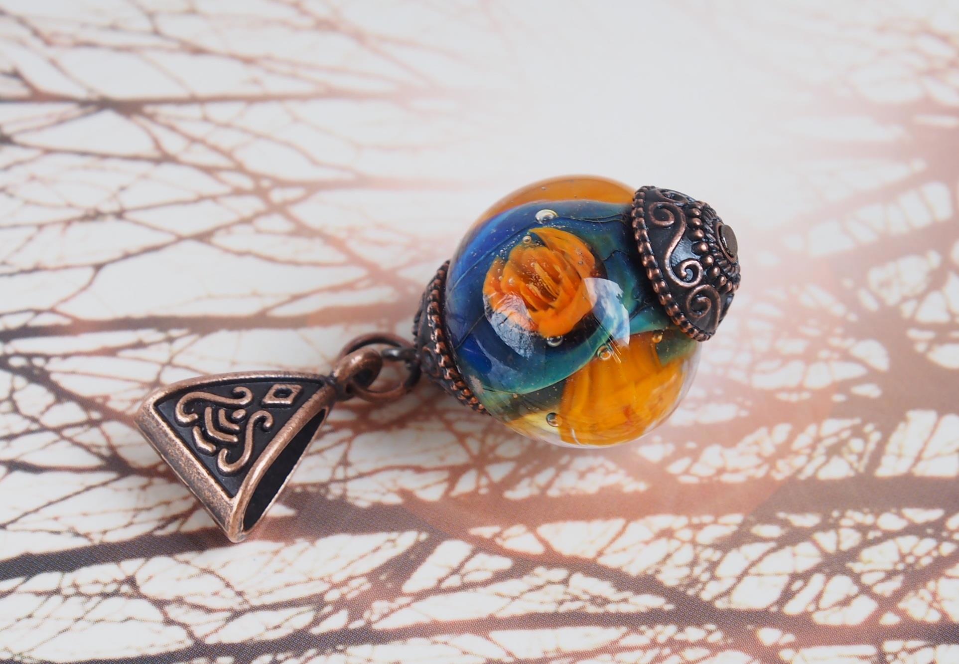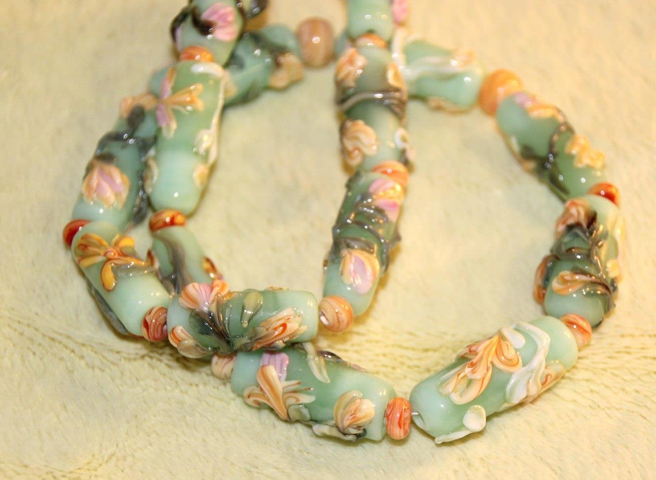 Я увлекаюсь изготовление стеклянных бусин на горелке, так называемый лэмпворк, так что цветы будут стеклянными и моей работы.