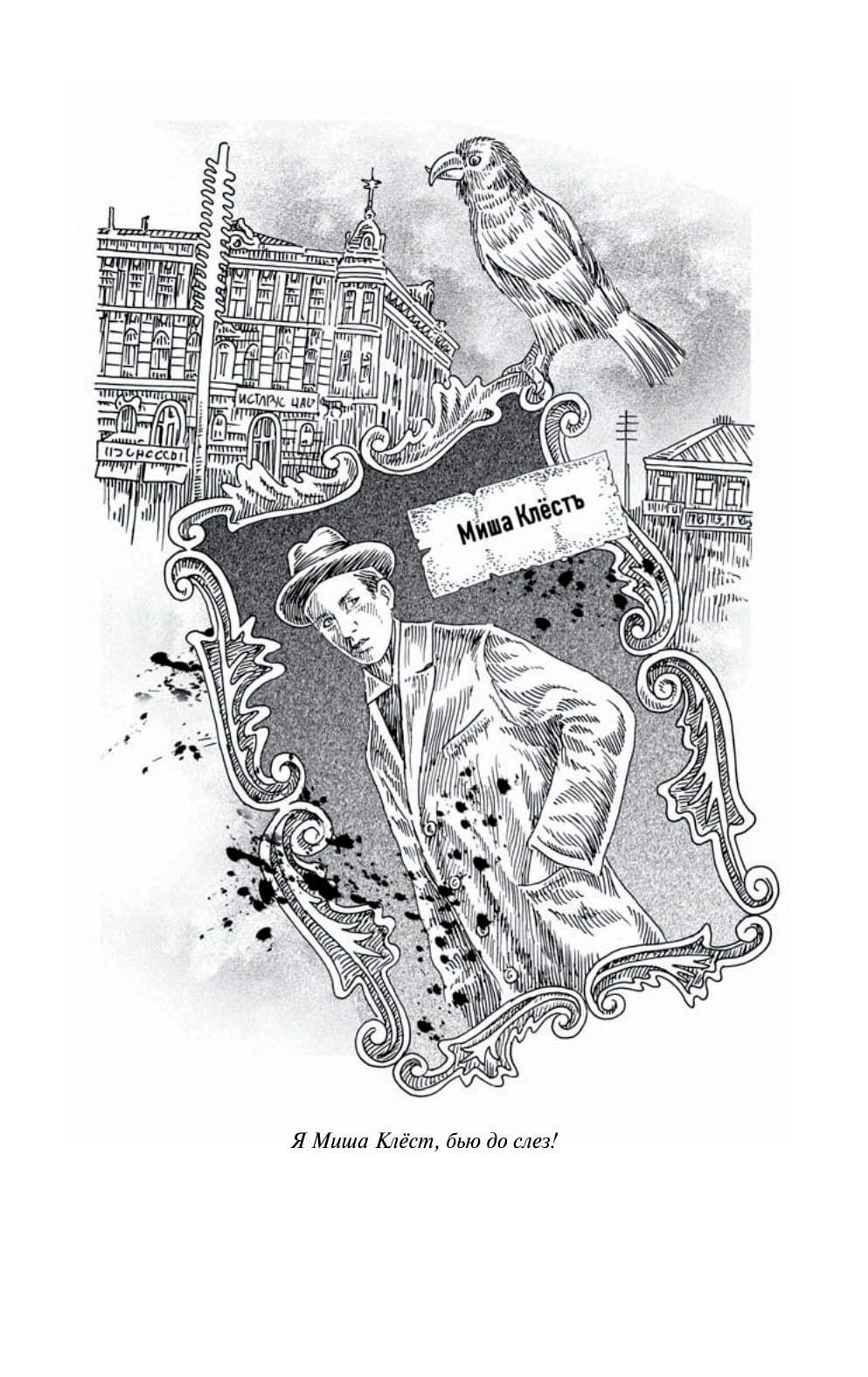 «Миша Клёст, гастролёр, назвавшийся подельникам французским именем Гастон, смотрел, как в мешок сыплются деньги. Пачки, перетянутые банковскими бандерольками, пригоршни разноцветных ассигнаций, золотые монеты. Мише было не впервой следить, что называется, в три глаза: за кассирами, за дураками-подельниками – ещё отчебучат чего невпопад! – за звуками, доносящимися с улицы. Внутренние Мишины часы, точные как швейцарский хронометр фирмы «Павел Буре», отсчитывали оставшееся время.