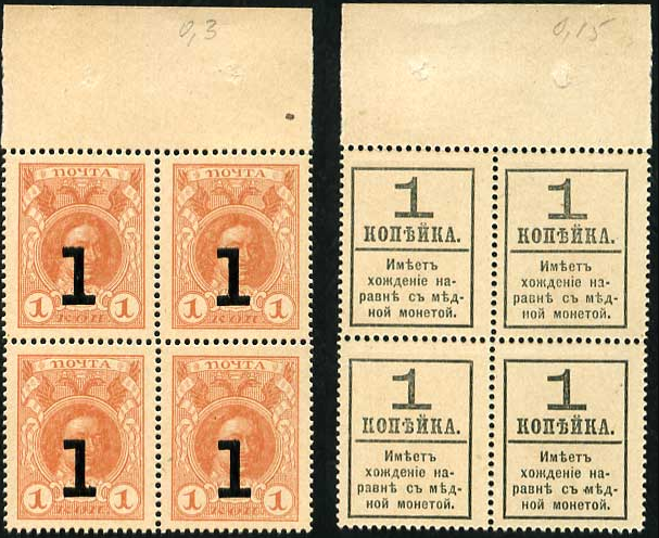 Ну и насчет керенок. Были и марки-деньги выпуска Временного правительства. На них лицевую сторону трогать не стали, а на обороте только герб убрали. Вот как-то так...