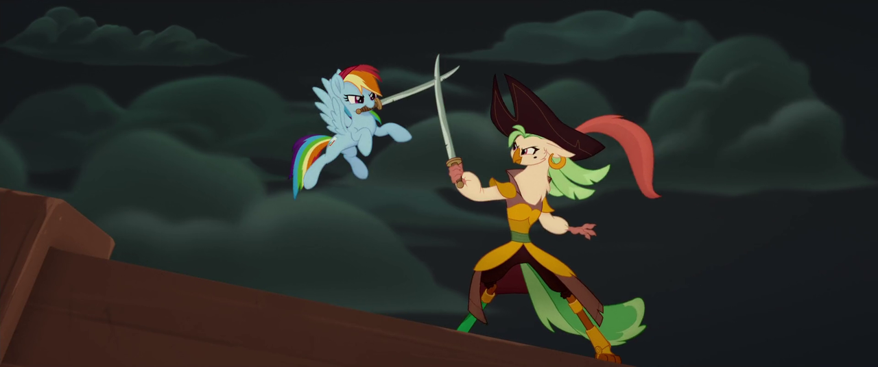 Кроме того, в сериале демонстрировалось также удержание предметов маховыми перьями крыльев или же просто подошвой копыта, так называемой магией «копытокинеза». Тем не менее, во всех пяти случаях меч кажется неудобным оружием для разумной лошадки. Даже у единорога, как видно сверху, меч предназначен для нанесения только рубящих ударов, причём рукоять его имеет скорее декоративную функцию. Для сравнения, сабля иного существа выполнена куда более качественно: