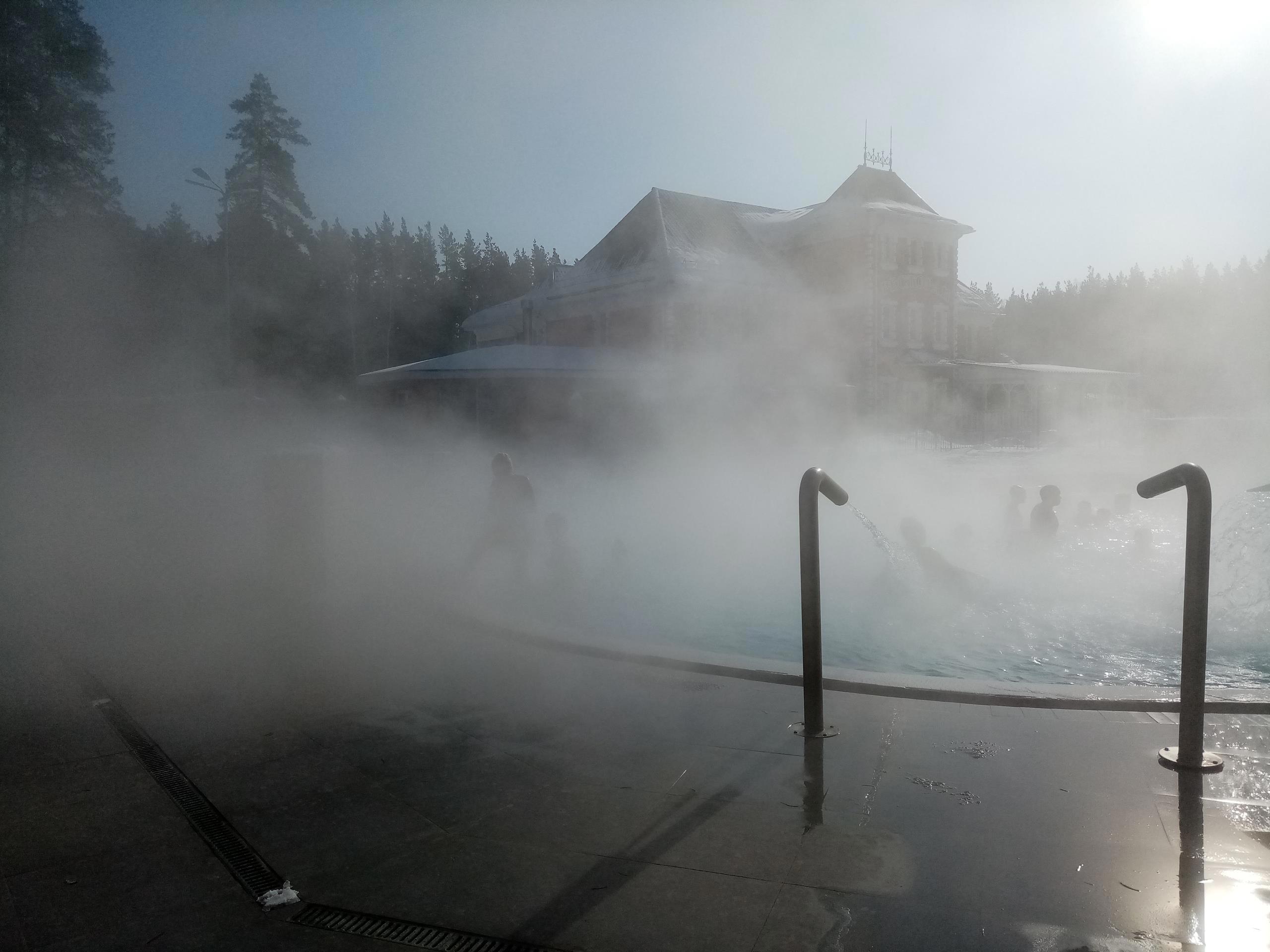 Бассейны под открытым небом - это круто! Летом ехать в такое место безтолку, а вот зимой! Когда снег, холод, а ты сидишь в тёплой водичке и балдеешь. Пар опять же такой, что видимость полметра. Куча разных бань, но смысл примерно один. Что понравилось отдельно - так эта бассейн с музыкой. Музыку слышно только если погрузить уши в воду - впечатляет!