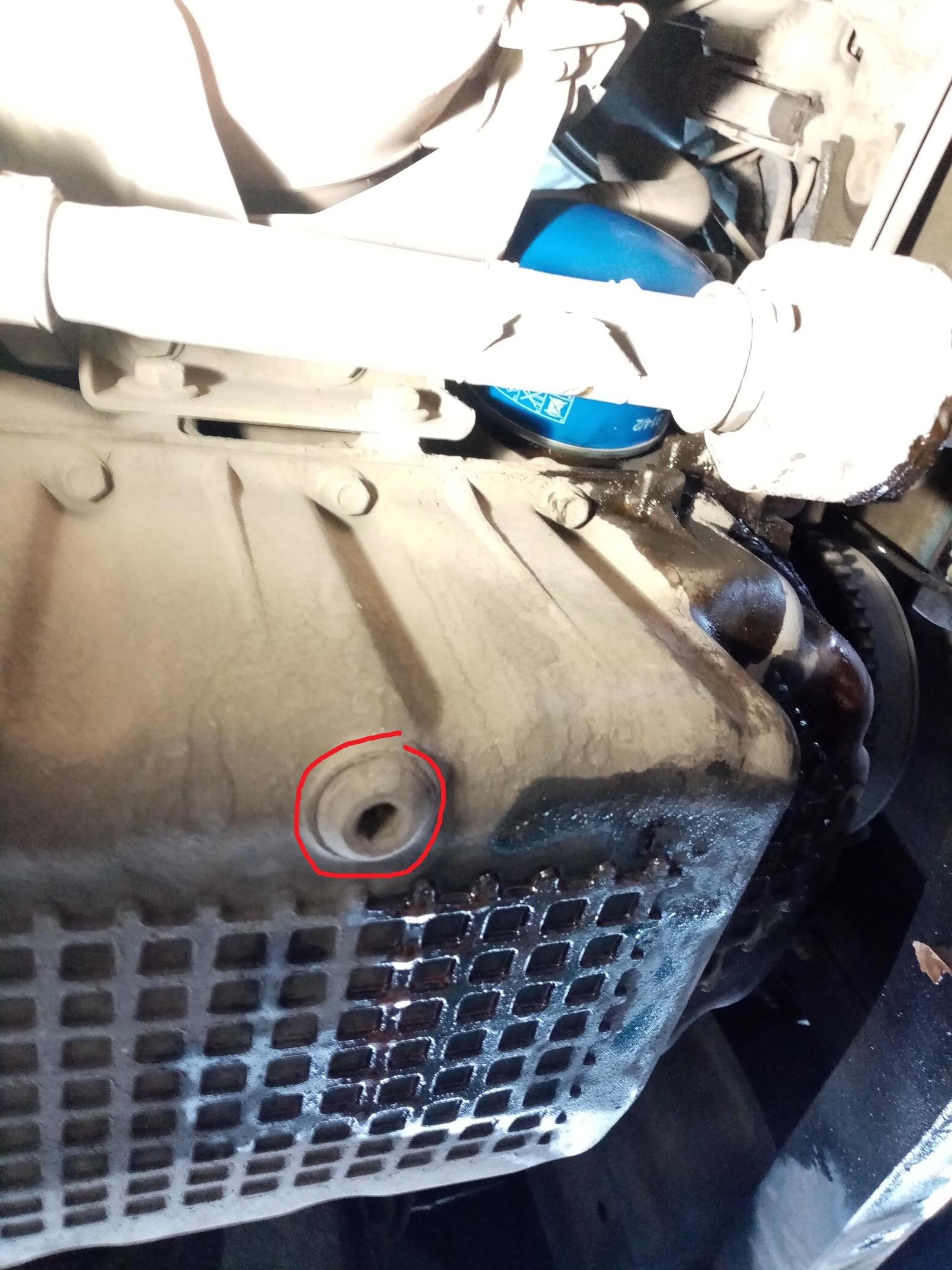И снизу. Красным выделена алюминиевая пробка для слива масле.