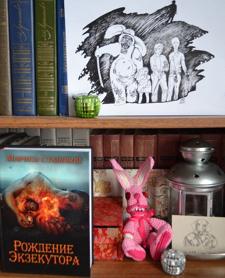 А еще они и рисунок с собой привезли! Аж в трех экземплярах! В общем, прекрасная Марика завалила меня плюшками на праздник. Оно, конечно, вышло так случайно, но получилось очень кстати! Теперь каждый год возле куличей и крашеных яиц у меня будет сидеть розовый кроля и охранять все это дело до наступления Пасхи!