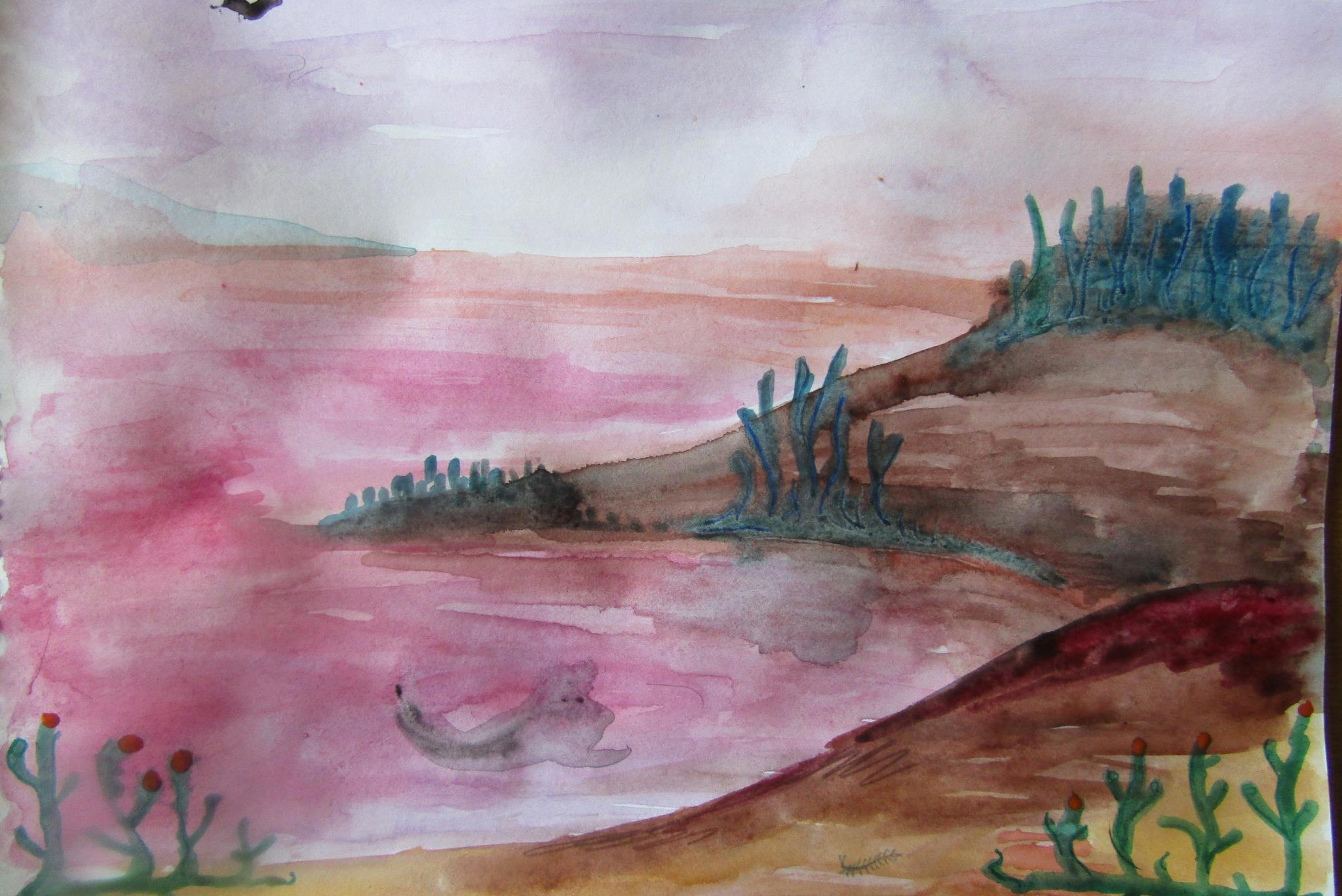 В общем, внезапно взяла акварель и... Вот примерно так будет выглядеть пейзаж, на фоне которого будет разворачиваться действие моей новой книги "Рассвет на чужой планете".